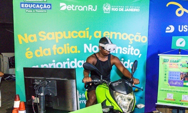 O Detran RJ está levando para a Marquês de Sapucaí, durante o Carnaval, uma importante ação educativa voltada à prevenção de acidentes de trânsito, especialmente os que envolvem motocicletas. Desde sexta-feira (13/2), primeiro dia de desfiles da Série Ouro, está oferecida ao público a possibilidade de passar por um simulador de acidentes de moto, com o uso de óculos de realidade virtual. É uma experiência que leva qualquer condutor a rever o modo como se comporta no trânsito.