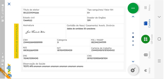 Na CIN digital, além da imagem da carteira física (em papel), também é exibida a imagem do QR Code, que possibilita a conferência e a validação do documento digital.